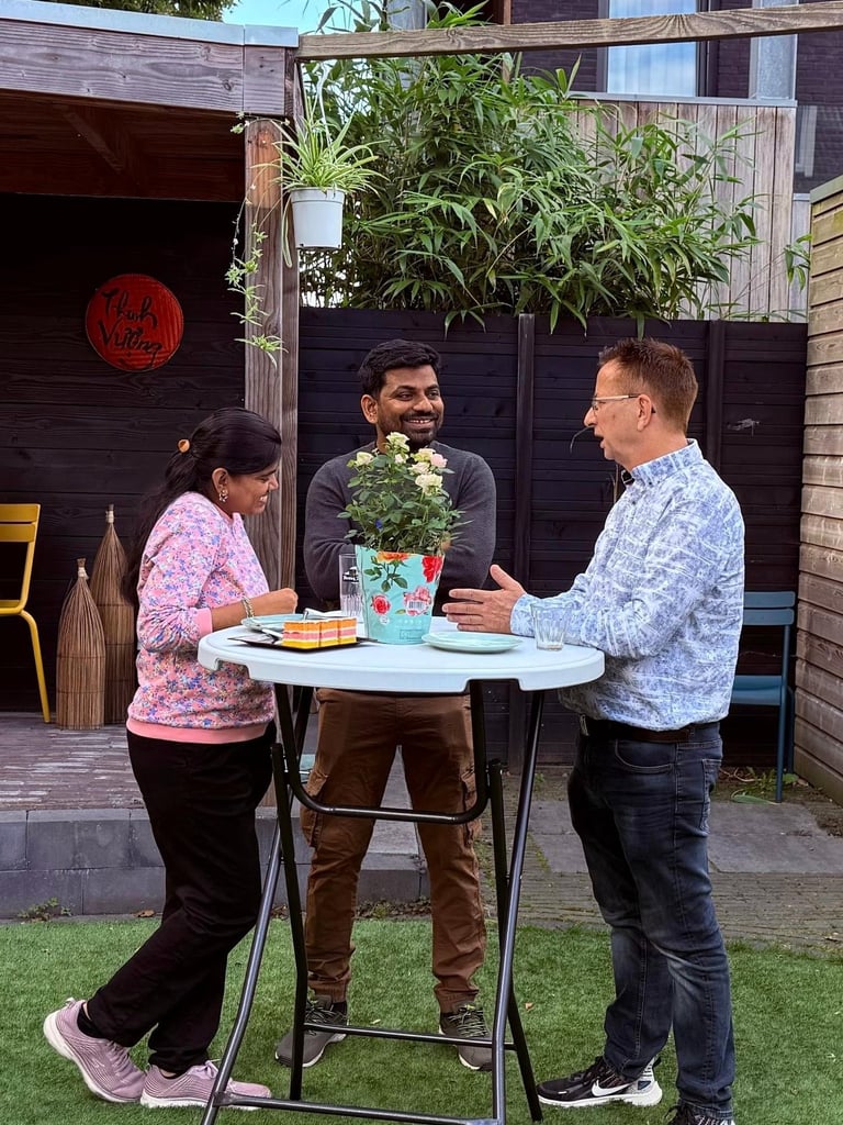 Giữa khung cảnh sân vườn tuyệt đẹp, bầu không khí của sự kiện khuyến khích các kết nối ý nghĩa và những cuộc thảo luận cởi mở. Khách tham dự đã tận hưởng những món ăn nhẹ ngon miệng trong khi giao lưu với những người có cùng đam mê về các cơ hội toàn cầu.